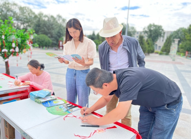 书写环保寄语祈愿美好生态。“呵护自然生态”、“建设人与自然和谐共生的现代化”、“保护环境人人有责”……伫立在城南人民广场上的环保寄语树上,挂满了一张张市民群众对生态环境保护的美好寄语,表达了群众对生态环境保护的重视和践行绿色低碳的决心。工作人员现场设立宣传点、咨询台开展政策宣讲及环境信访投诉受理工作,向市民发放环保法律法规宣传手册及环保纪念品200余份,倡导辖区群众牢固树立“绿水青山就是金山银山”理念,共同推动形成人与自然和谐发展新格局,为保护生态环境作出自己的努力。