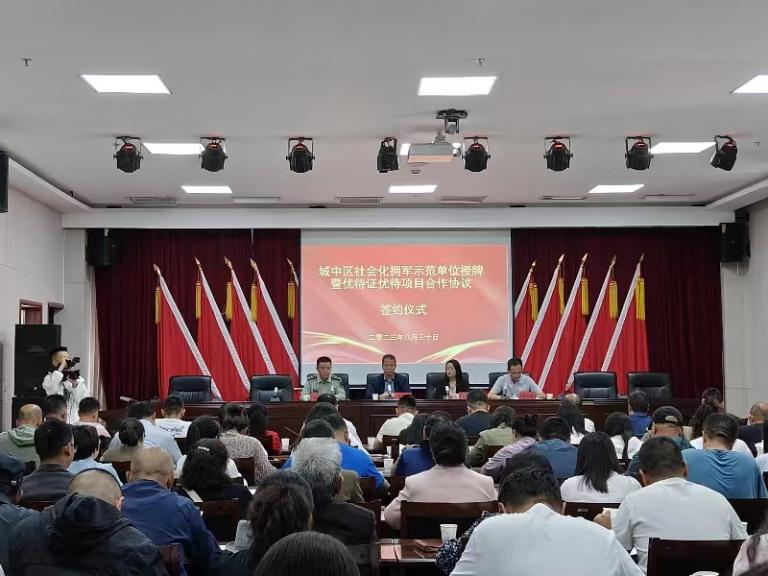 为发扬拥军优属的优良传统,推进军人荣誉体系建设,近日,城中区退役军人事务局在城中区政府会议室举行2023年城中区社会化拥军示范单位授牌暨“优待证”优待项目合作协议签约仪式。市退役军人事务局及区各有关部门负责同志、合作单位、退役军人代表出席签约仪式。