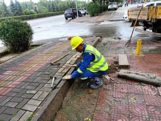 二是市政道路设施维护。为保障市民节日出行,我中心维修人员加紧对辖区各类市政设施进行跟踪处置和恢复,重点对同安路、庄和路、新城大道、明昊路辖区人群较为密集场所在不影响市民正常通行情况下,利用夜间人少维修便利的条件对人行道地砖缺失、松动、护栏破损、倾斜和帽头缺失等病害进行快速高效处置,累计完成修复人行道修复30平方米,盲道修复20平方米,更换维修护栏69米、安装护栏帽头4个。以保证市政道路、设施安全平稳运行.