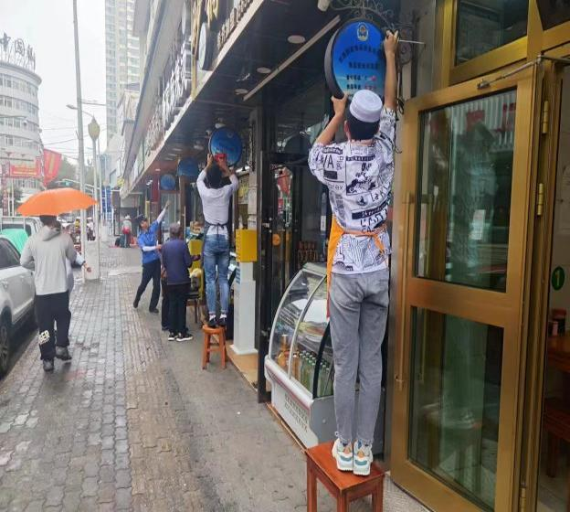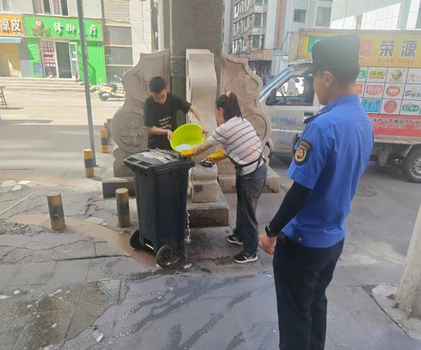 维护商圈市容秩序。与相关管理单位建立联合执法机制,集中整治商圈周边市容环境卫生,对沿街商户店外经营、乱堆乱放、占道经营以及游客乱扔垃圾、破坏公共设施等不文明行为,共同开展巡查整治,及时督促沿街商户擦洗脏污门头橱窗,维修破损门头牌匾、规整清理私拉乱接的“蜘蛛网”线缆,及时消除安全隐患,改善商圈颜值,提升游客旅游满意度。