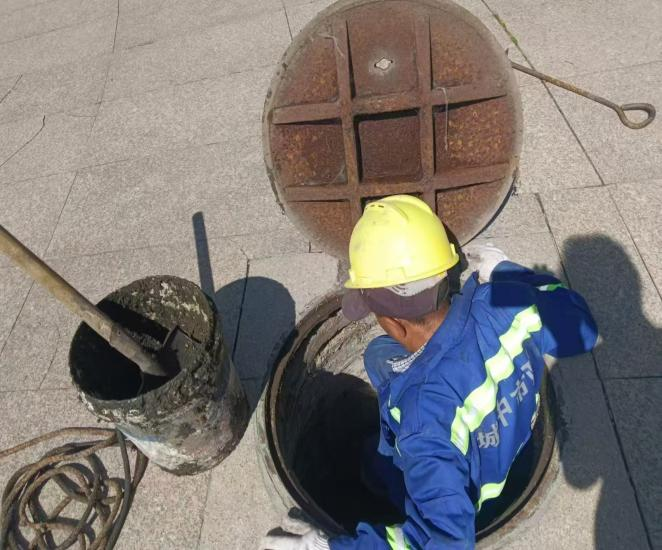 清掏排水设施,及时消除隐患。针对汛期中心广场易积水的现象,区市政中心提前开展广场雨水管网淤堵情况摸排工作,结合城区易积水点分布位置与积水点程度等防汛工作的经验,认真分析积水原因,严格按照清淤工作方案,全面开展清掏,最大限度提升清淤效果,做到清掏彻底、边掏边盖、清掏一处,畅通一处,保证排水井、污水井内管网连接口清掏干净,对清掏的淤泥和垃圾随清随运,确保排水管网设施安全运行、畅通无阻。截至目前,清掏雨水篦子38个,排水井18个、污水井13个。