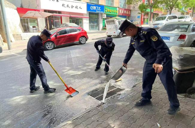 为最大程度防范降雨期间发生城市内涝,中区城管局组织执法人员深入辖区内各个容易出现积水的路段、地下通道和低洼区域,仔细摸排辖区内排水设施的运行情况,对雨水篦子是否堵塞、井盖是否完好、排水管道是否畅通等进行了逐一排查。对部分排水不畅的路面及时采取应急措施,疏通下水道井口杂物,针对发现的部分排水管道堵塞、井盖破损等问题,及时通知相关部门进行整改。