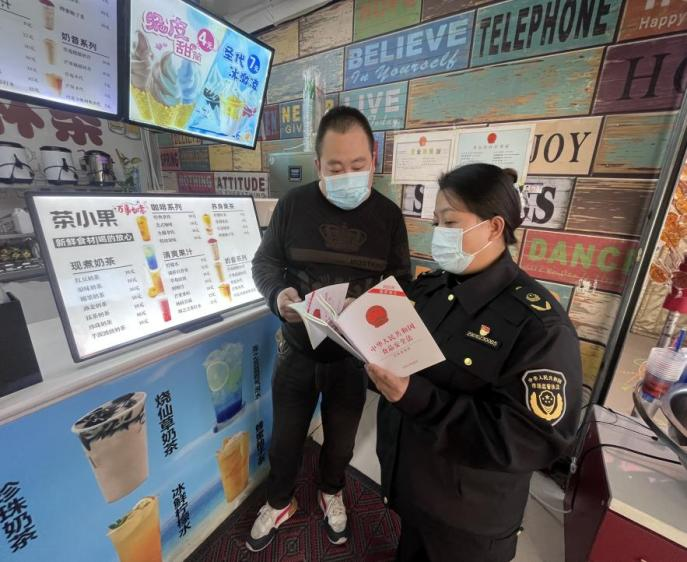 辅导个性化,变“普遍讲”为“针对教”。在送法过程中,执法人员并非简单“一送了之”,而是结合不同业态特点,开展“一对一”精准辅导。针对餐饮店,重点讲解食材采购溯源、加工过程控制及反食品浪费的新要求;针对食品销售者,详细解读进货查验记录制度的深化与标签标识规范;针对奶茶店,着重阐明食品添加剂管理红线。通过将法条与经营实际场景对照讲解,有效提升了普法的针对性和实用性,帮助经营者快速把握合规关键。截至目前,“送法上门”各类经营户17家,未诉先办化解矛盾纠纷3起。