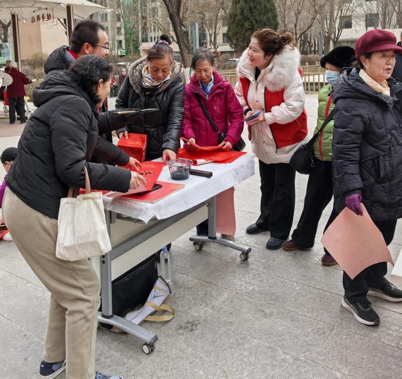 活动现场年味浓郁、暖意融融,辖区书法爱好者现场挥毫,为居民免费书写春联与福字,笔墨飘香间传递着新春的美好祝福;医保局工作人员则向居民发放医保政策宣传册,共同营造出“新春送福+医保惠民”的浓厚氛围。结合春节期间群众的就医特点,医保工作人员用通俗易懂、接地气的语言,重点讲解了2026年城乡居民医保缴费标准、集中缴费时间节点、报销流程、异地就医备案、门诊统筹报销、慢特病认定等高频热点政策;针对老年人、儿童、慢性病患者等重点人群,还耐心解答了“缴费后何时生效”“异地看病如何报销”“门诊买药能报多少”等群众关心的实际问题。此外,工作人员向居民发放医保政策宣传册与新春福字,将医保政策知识与新春美好祝福一同送到群众手中,让大家在感受节日氛围的同时,全面了解医保惠民政策,切实提升政策知晓率与获得感。
