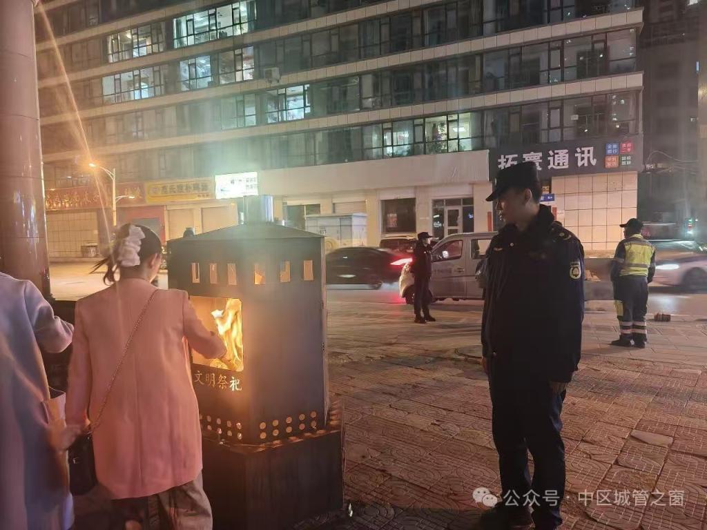 为切实保障春分至清明节期间辖区群众祭祀安全有序开展,有效防范火灾风险,有力管控市容环境,城中区城管局高度重视、提前谋划、主动作为,聚焦“秩序维护、安全防控、市容整洁”三个方面,扎实做好祭祀服务保障工作,为广大市民营造安全、文明、绿色的祭祀环境。