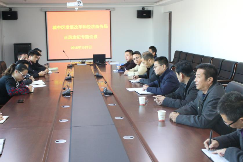 2018年1月9日上午,城中区发展改革和经济商务局召开正风肃纪专题会议局机关工作人员共20人参加会议,区纪委派驻第二纪检组组长马东升、副组长周源列席会议。会议传达了《中共西宁市城中区委办公室关于印发<西宁市城中区委深化国家监察体制改革试点工作实施方案>的通知》