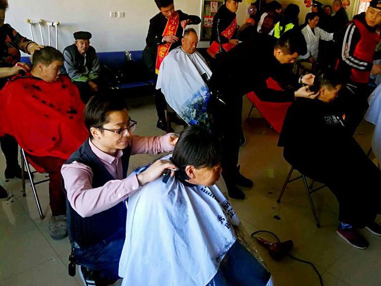 敬老院三楼的大厅里,理发师志愿者正在忙碌着为30余名孤寡老人和敬老院的员工们义务理发,剪刀、梳子在他们手中轻快的飞舞,随着细细的剪刀声,老人们原本有些凌乱、斑白的头发变得干净、整齐、利落,理发师志愿者边和老人唠家常边理发,细致入微的服务让老人们的脸上洋溢着幸福的笑容。看着镜子里精神了许多的模样,王大娘握着“秀丝丽颜”老板吴飞飞的手连声道谢,为理发师们点赞!个私协会用前期筹集的善款,购置了价值5600余元的日用品,送到了老人们的手中,这是个私协会继总寨镇清河村小学义务捐助后在城中食药局的倡议、组织下的又一次善举。此次敬老院送温暖公益活动,得到了区民政局高度评价和肯定,也获得了敬老院院方的诚挚感谢!