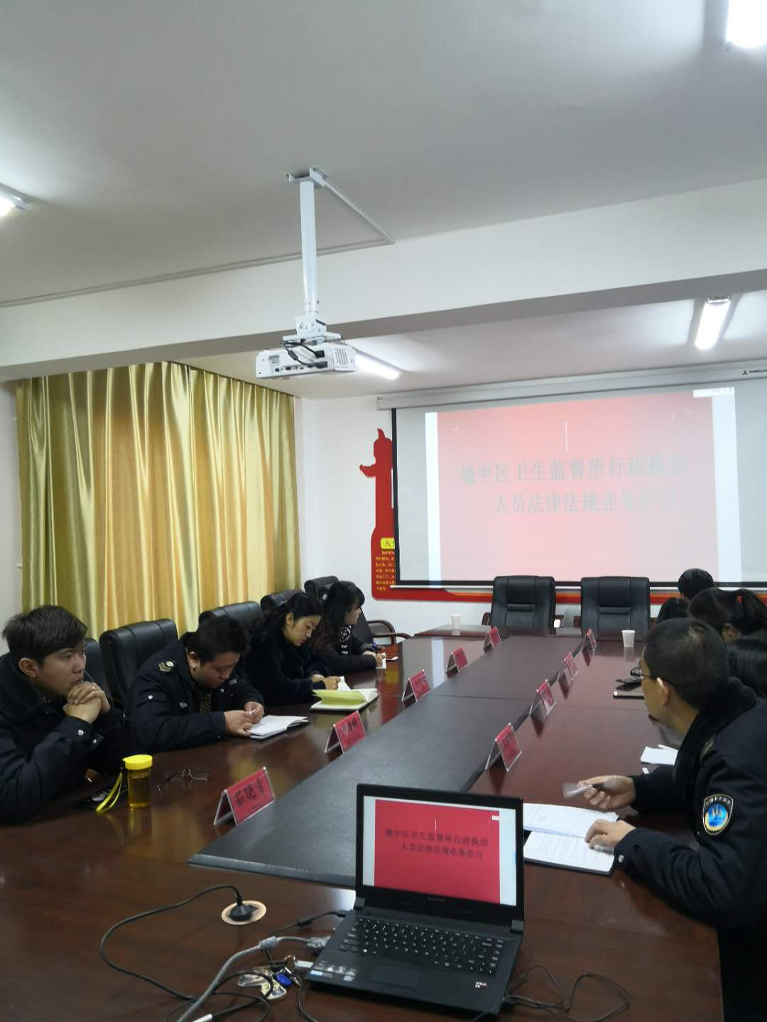 为迎接国家“双随机、一公开”工作顺利开展,进一步提高我区卫生监督执法队伍的办案能力,切实提高执法水平,规范行政执法行为, 城中区卫生监督所组织全体执法人员学习卫生计生行政执法典型案例及卫生监督相关法律法规。