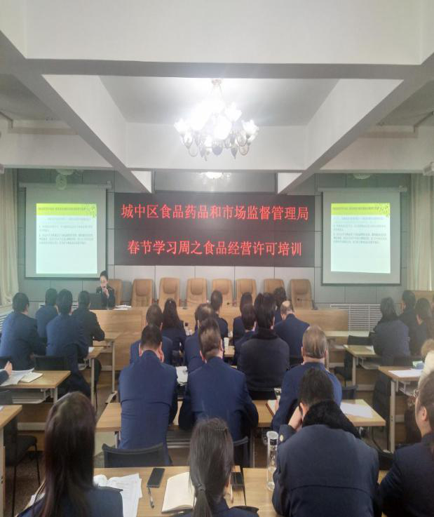 为进一步规范食品经营许可业务办理,提高全局干部职工的工作水平,提升依法行政能力,城中区食品药品和市场监督管理局于近日上午举办“食品安全+”培训班。各科室、所、队及市场巡查人员共79人参加了培训。