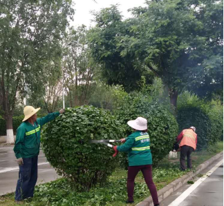 为做好旅游旺季及省市各类重点活动赛事期间园林绿地养护管理及景观氛围营造工作,展示西宁城市良好形象,区市政公用服务中心严格落实旅游旺季服务保障工作要求,加强精细化养护管理,开展各项园林绿地环境综合整治工作,保证绿地苗木长势良好,环境整洁优美。一是避开车辆高峰期,利用夜晚时间对长江路、西大街、五四桥等路段行道树枯死枝、影响交通视线的分枝点下方次生枝条进行了修剪;二是做好了西门文化广场滨河路、南山路、南京路等主要大街及重点地段绿篱、色带整形修剪、除草及浇灌等养护管理工作。三是组织人员全面清理庄和路和明昊路道路绿地杂草、枯枝及绿地内的砖头、瓦块,并对明昊路绿化带内枯死苗木进行更换,补植小云杉1400余株。四是做好了花街和景点除草、浇灌,花箱及花架清洗等维护工作,及时更换景观效果不佳的残败草花,营造生机勃勃的街头景观。五是加强日常卫生保洁力度,做到绿地内垃圾随产随清,并对绿地内园林小品、坐凳、垃圾箱等设施进行了擦洗。通过各项绿地环境综合整治工作的开展,进一步提升了城区绿地景观效果。