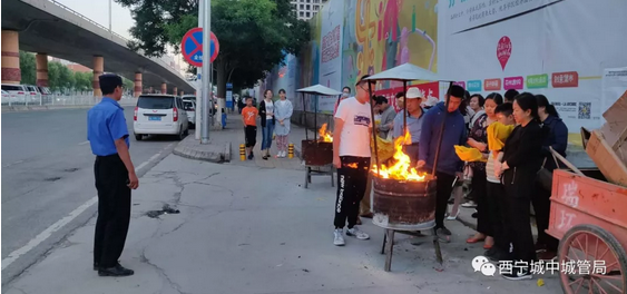 二是设置祭祀场所,确保祭祀秩序。城中区城管局在辖区劳动路中段、砖厂路东段、滨河路中段等7个地段设置文明祭祀场所,摆放焚烧炉15个,安排执法队员现场值守,对祭祀行为进行疏导和管理,引导市民群众在焚烧炉内焚烧冥币,确保文明祭祀活动安全、有序进行。