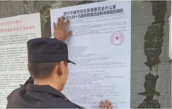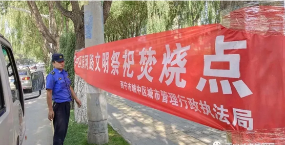 一是做好文明祭祀宣传引导。组织执法队员在辖区内便民宣传栏和小区楼院张贴《西宁市城市综合管理委员会办公室关于农历七月十五期间开展祭奠活动有关事宜的通告》,共400余份,倡导居民前往规定的祭祀场所进行祭奠活动。同时,在祭祀点设置横幅,做好祭祀宣传引导工作。