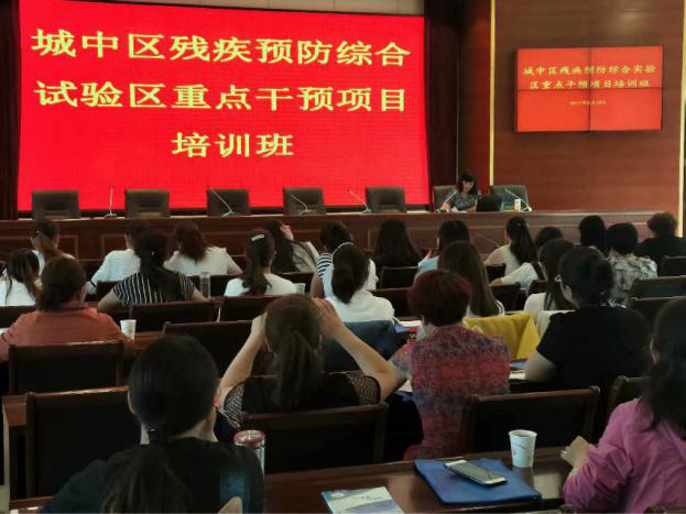 通过召开动员会、培训会,加强对辖区医务人员的培训,提升医务人员残疾预防工作业务能力,先后邀请青海省级专家对辖区社区中心、卫生院、村卫生室及社区卫生服务站67名相关人员进行残疾筛查工作的业务培训,并派出8人参加全国残疾预防项目的培训。同时,抓住重要时间节点如“家庭医生宣传日”“助残日”、“爱眼日”“爱耳日”“职业病宣传周”重大节日,将残疾预防有关内容全面纳入相关主题宣传活动,通过制作横幅、设立展板、发放宣传册等形式在公共场所进行义诊,普及有效控制出生缺陷和发育障碍致残、着力防控疾病致残、努力减少伤害致残、显著改善康复服务状况等四方面的核心知识,让公众了解各种致残风险,进一步使公众掌握预防残疾的方法和途径。截止目前,共计发放宣传册2000余份,接受1500多人次咨询。