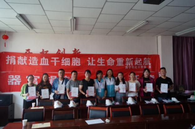 川东社区卫生服务中心三楼会议室内,自愿捐献造血干细胞的志愿者早早到达采集现场等候,认真观看捐献造血干细胞的公益宣传片和造血干细胞捐献流程科普宣传片。西宁市红十字会李会长用浅显易懂的语言讲解了捐献造血干细胞并不会对捐献者本身的健康造成损害和采集的具体流程、条件及重要意义,随后组织志愿者有序进行了填表、健康筛查、抽血、完成血样、发放荣誉证书的采集流程。参加采集的志愿者共计30人,其中大部分为医务工作者,成功采集血样22份,发放慰问品雨伞、毛巾和手推式扫把各30份。
