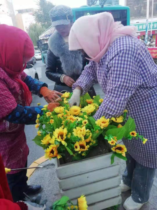 为保证城区道路整体景观效果良好,美化冬季街景,组织人员全面展开冬季绢花造景工作。一是在安排撤离花箱的同时,保留东、西大街、南关街、北门坡等主要街道花箱及花架,并利用仿真绢花进行装饰,在北门坡、大十字、西大街、莫家街花架及花箱内扦插的仿真花有一品红、绿植、向日葵、仙客来等,共计4430株;二是在南关街在原有的花箱内放置容易清理维修,美观大方,植物造型好看的仿真云松,共计161株;三是在西大街花箱放置仿真枫树,共计135株;这些色彩艳丽的绢花“生长”在冬季的西宁街头,给人们春意盎然的视觉享受,四是昆仑路、奉青路、南京路等绿地内种植的草花枯萎后及时清理,裸露地面将铺设绿色的仿真草坪,从而保证绿地冬季景观效果良好。