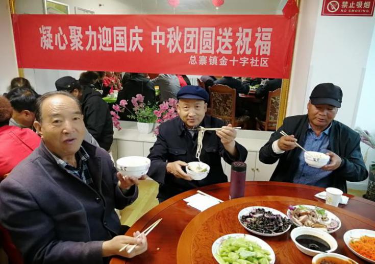 共聚团圆,喜迎国庆。当国庆遇上了中秋,就是家国同庆的时候。一碗“国庆面”,满满爱国情;共聚团圆节,同庆中国节。各村、社区党员干部或聚在幸福食堂或在露天广场做起拉面,同吃国庆面,为祖国送上诚挚祝福。大家有条不紊地进行着各道程序,交流制作方法和技巧,围坐一起分享活动感受。金十字社区老党员杨全德高兴的说道:“国庆面”里有幸福的味道,关怀的味道,自豪的味道,今天幸福美好的生活,得益于祖国的繁荣富强,我们要以实际行动继续发光发热,为党旗增辉,为中秋送暖。”