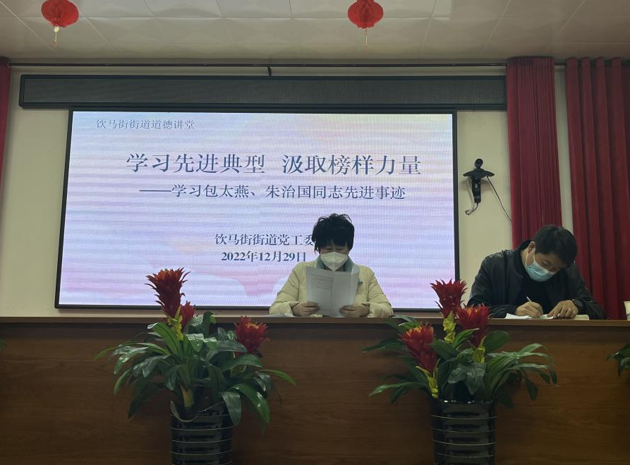 伟大的时代呼唤伟大的精神,崇高事业需要榜样的引领。榜样如炬,是时代精神的化身,是催人奋进的力量。为大力弘扬榜样精神,充分发挥先进典型示范引领作用,营造“学先进、强信念、比赶超、出实绩”的浓厚氛围。近日,城中区饮马街街道党工委开展了“学习先进典型 汲取榜样力量”学习宣讲会,组织学习包太燕、朱治国同志先进事迹。街道领导班子成员、机关干部职工、各社区两委成员参加学习会。