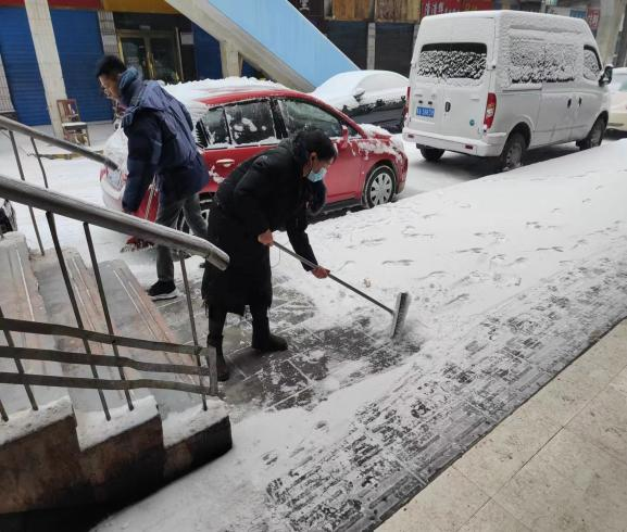 针对此次降雪,人民街街道办事处密切关注天气变化及道路情况,提前做好统筹协调工作,保障各类应急清雪物资充足,对辖区重要点位进行深度排查,确保雪后第一时间高效有序开展扫雪除冰工作。2月13日,大地一片银装素裹,人民街街街道迅速启动扫雪除冰应急预案,按照网格化扫雪除冰工作机制,积极组织街道机关干部、社区工作者、党员、物业人员、企业商户及各族群众一同加入到扫雪除冰工作中来。对主路旁人行便道、各生活小区、小街巷、商户门前开阔地等进行积雪清理。城管执法中队督促辖区商户、物业落实“门前六包”责任制,并对无责任人的区域进行清扫、对重要坡段配合抛撒融雪剂,确保无死角、无盲区,有力保障了行人、车辆的出行安全。