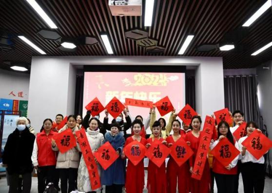 执笔绘红笺,墨香迎新年。为迎接龙年春节的到来,弘扬中华优秀传统文化,营造“我们的节日”欢乐喜庆、文明祥和的节日氛围,唱响奋进新时代的主旋律。1月24日,人民街街道团工委组织辖区的团支部、青年志愿者、“返家乡”大学生、九康医药连锁工作人员共同开展“相聚暖冬共精彩 齐乐‘龙’‘龙’迎新春”主题活动,将节日的温暖提前送到居民群众身边。