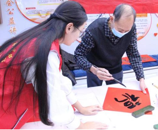 墨香四溢迎新春,书写春联送万福。在“迎新春 写福字 送祝福”环节,通过写春联传递美好祝福。现场邀请了两名书法爱好者老师,教大家写“福”字和春联,一横一撇、一停一顿、一起一落都融入大家对新春的希望和未来的期许,一幅幅寓意吉祥的春联和“福”字为即将到来的新春佳节增添浓浓“年味儿”,也让辖区的青年和群众浸润在中华优秀传统文化的悠扬韵味中,营造了良好的文化氛围和其乐融融的节日氛围。