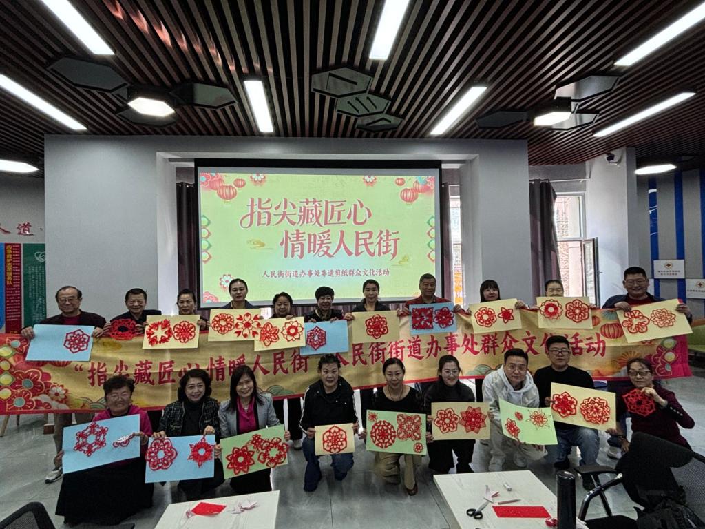 为丰富辖区群众精神文化生活,传承弘扬非物质文化遗产,凝聚邻里温情、厚植文化情怀,近日,在人民街街道新时代文明实践所开展 “春韵润民心・文化聚人民”2026年春季群众文化系列活动首场 ——“指尖藏匠心 情暖人民街”非遗剪纸体验活动,辖区30余名居民群众热情参与,在指尖创作中感受非遗文化魅力。