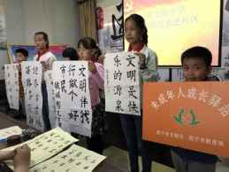 最后,参与活动的未成年纷纷表示,此次活动很有意义,希望以后能多搞这样的活动。给我们在亲自书写文明标语、创作文明宣传画,展示才艺的同时,要向更多人宣传创建全国文明城市知识。做到从我做起,人人争做创城志愿者。