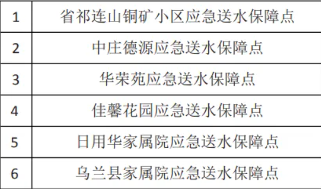 停水区域:省祁连山铜矿小区、海元矿业家属院、中庄德源、华荣苑、佳馨花园、日用华家属院、乌兰县家属院、物资局家属院、英德尔酒店。