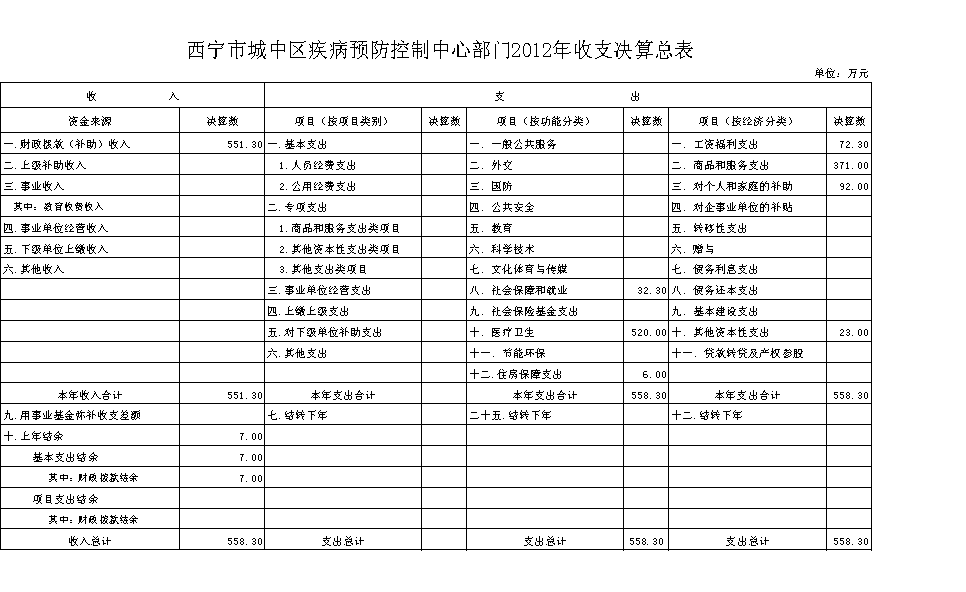 西宁市城中区疾病预防控制中心部门2012年支出决算分类汇总表