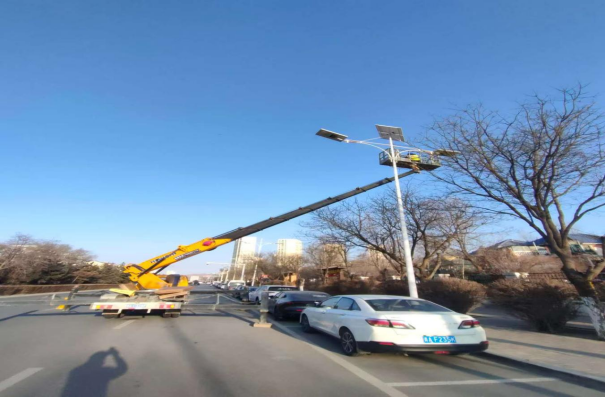 严把质量抓施工,高效推进焕新颜。工作推进过程中,区市政中心聚焦问题核心,组织专业人员与维修队伍开展全域排查,深入研判难点问题,科学制定更换实施方案,明确工作目标、时间节点及保障措施。结合道路通行需求、周边环境及日照条件,精选照明亮度高、续航能力强、使用寿命长、节能环保的高效晶硅太阳能路灯,同时合理调整照明时间与照射角度,确保照明覆盖无死角。严格恪守“质量第一、安全至上”原则,于1月19日正式启动全面更换安装工作。区市政中心连续奋战,仅用7天时间,于1月25日完成120组新路灯的安装任务,累计投入施工人员15人次、机械设备7台次,目前新路灯正有序开展调试工作。